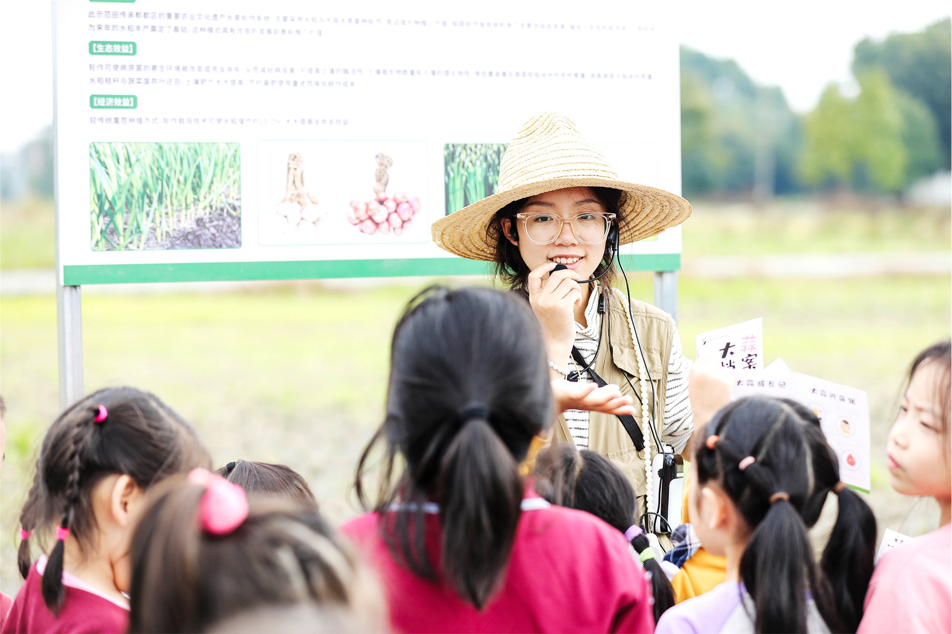 这样的研学课,正是园区“袁隆平青少年学堂”的日常。五年前园区开园时,便同步设立袁隆平杂交水稻科技馆、院士工坊和青少年农业双创中心,配套2000余亩高标准农田,打造研学营地与劳动教育基地,希望让“少年识农愿”照进现实。“通过泥地课堂、稻渔共生观察等课程,孩子们能亲身体验‘禾下乘凉梦’的奋斗历程,理解现代农业科技的意义。”许玉说。