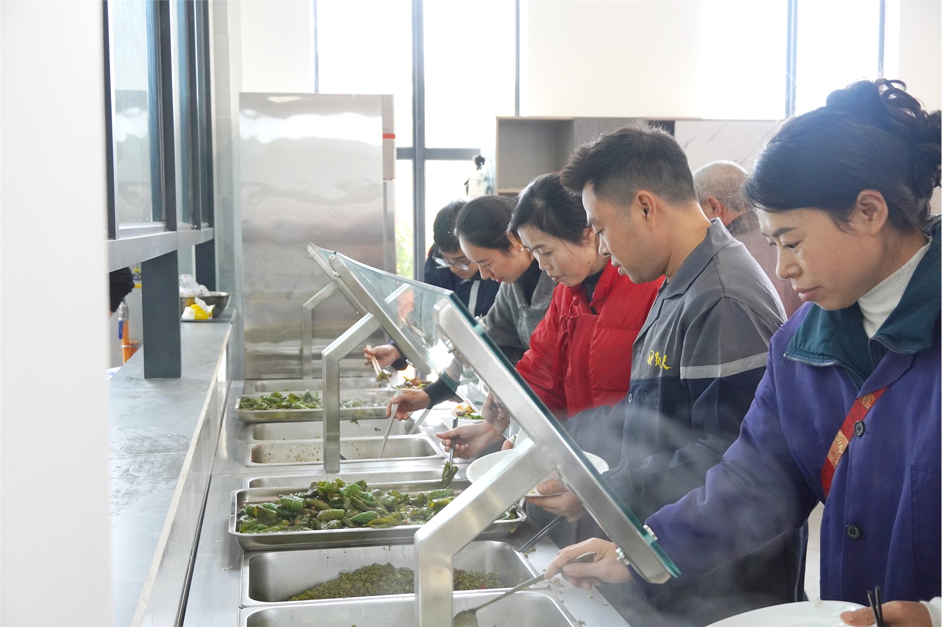 走进桃源幸福食堂,敞亮空间内原木色桌椅整齐排布,氤氲饭香扑面而来。餐台前,园区员工、村民有序排队,餐盘里荤素搭配的菜品色泽诱人——刚出锅的回锅肉香气浓郁,清炒时蔬脆嫩爽口,汤品暖身更暖心。“以前吃饭得跑两公里外,遇上加班只能啃冷面包,现在走出工厂就能吃上热饭,12元管饱还营养,太贴心了!”园区职工王强一边夹起小炒,一边由衷点赞。