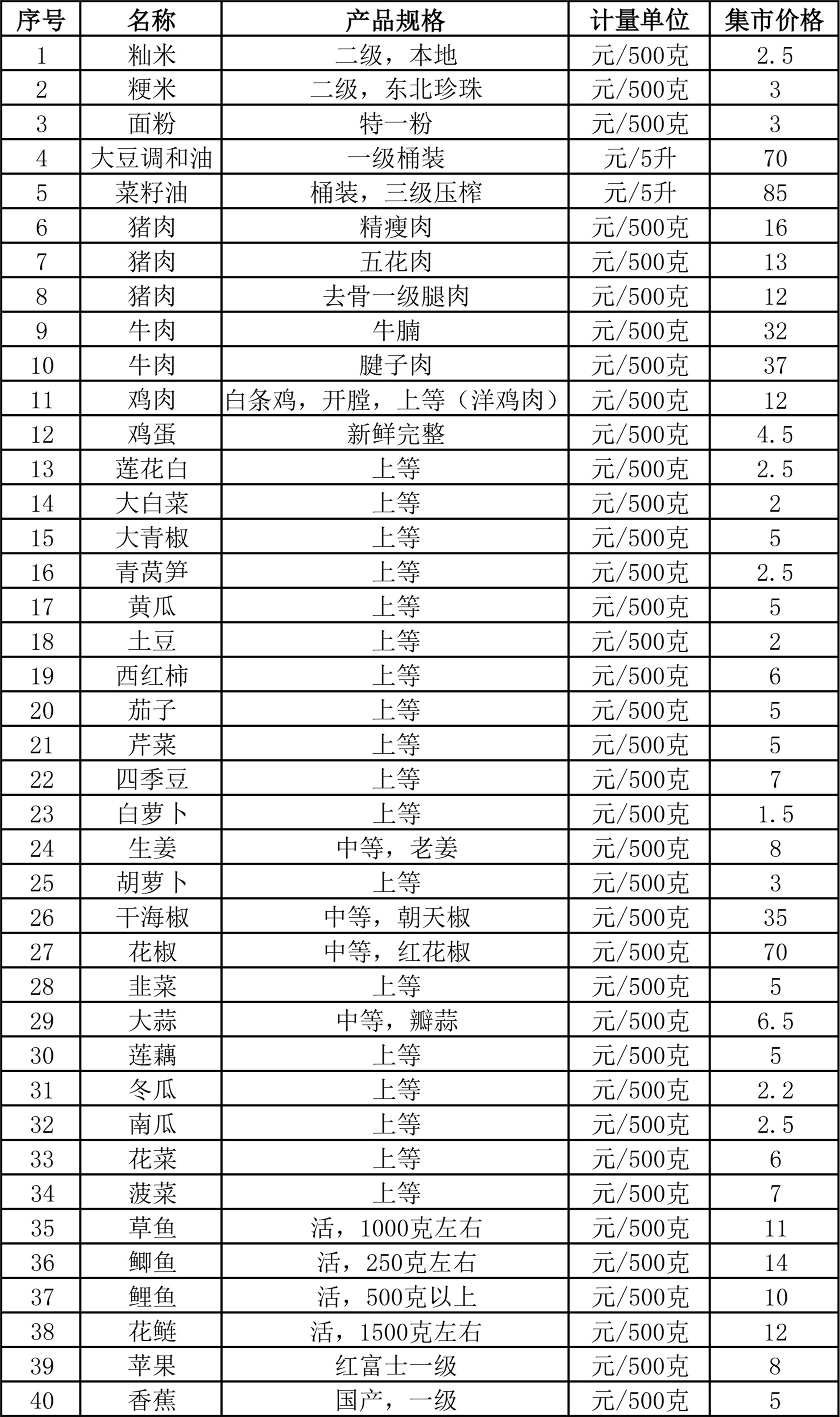 郫筒街道东街农贸市场居民主要食品零售价格动态