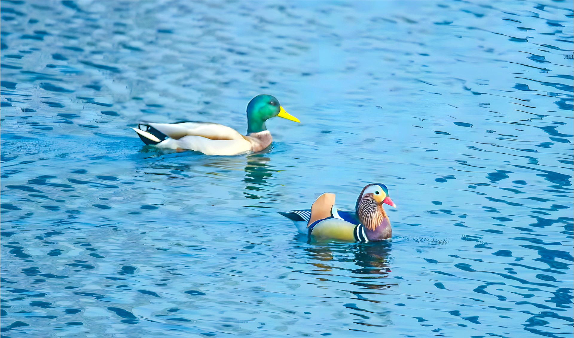 今年冬天,菁蓉湖的碧波之上再度热闹起来,赤嘴潜鸭、野生鸳鸯、绿头鸭等一众“鸟明星”如约而至,成群结队,嬉水觅食。这些堪称天然水质检测员的珍稀水鸟,已连续两年选择在此“安家越冬”,成为郫都优良水生态最生动的“活体认证”。据悉,菁蓉湖源源不断的活水补给,来自上游的清水河。正是这条河的碧波清流,滋养出一方引得水鸟栖居的生态沃土。