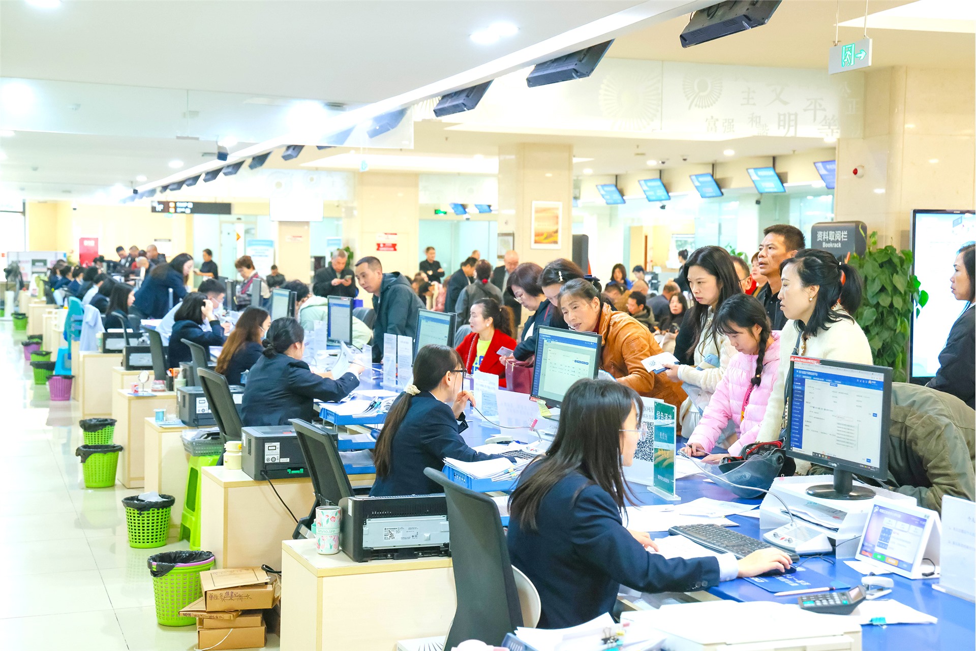 据悉,区政务服务中心共进驻区级部门32个,设置服务窗口207个。16时左右,大厅迎来了新年首个办事接待高峰。各窗口工作人员按照标准化流程做足准备,进入满负荷运转,整个大厅忙而不乱、繁而有序。
