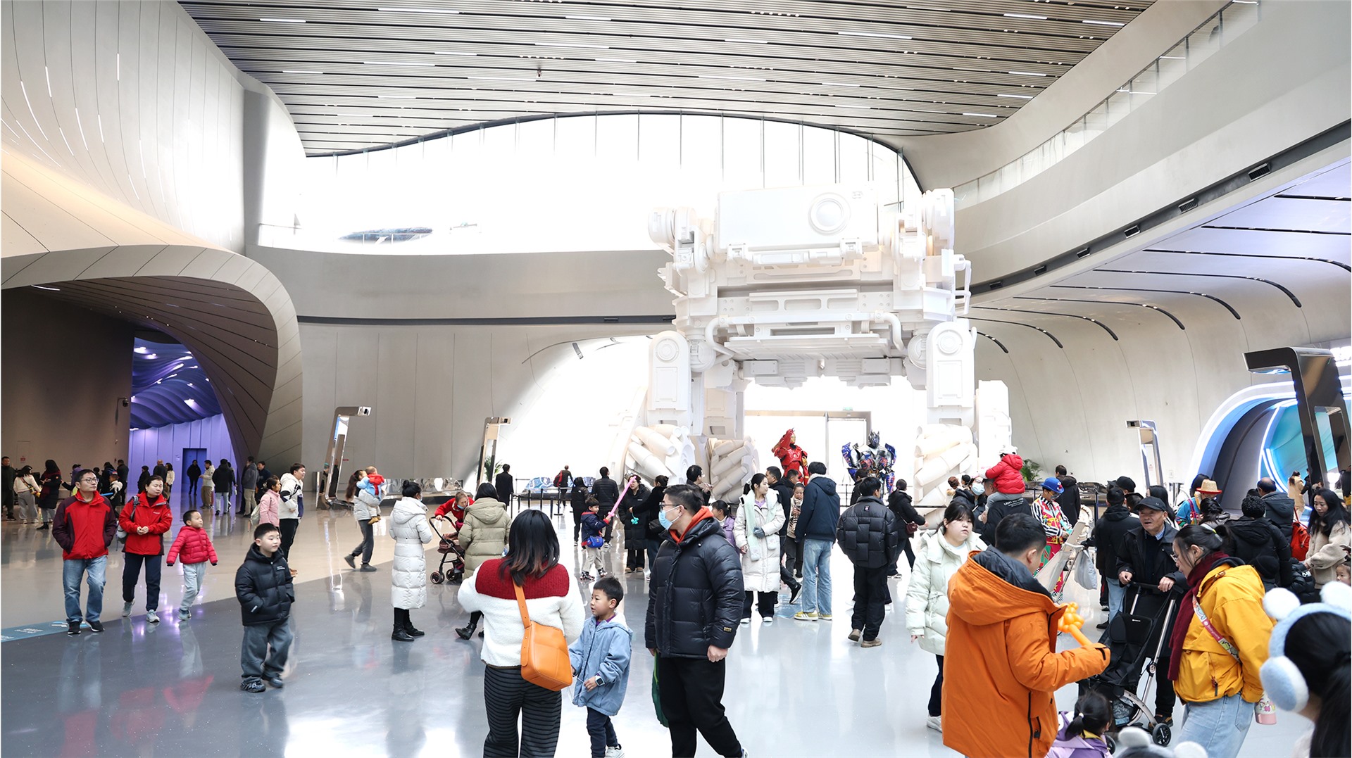 “钢铁侠居然和我说新年快乐!”“我握到擎天柱的手了!”刚踏入场馆,经典机甲形象与观众的近距离互动,瞬间点燃了现场的热情。带着孩子前来的李晓难掩兴奋,她举着相机不停记录着孩子与机甲合影的瞬间,“孩子从小就是科幻迷,今天能和喜欢的角色近距离接触,他开心得直跳。这样的元旦活动太有意义了,既好玩又能激发孩子对科技的兴趣。”
