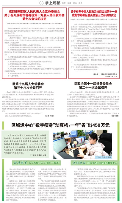 成都市郫都区第十九届人民代表大会常务委员会第三十八次会议决定:成都市郫都区第十九届人民代表大会第七次会议于2026年1月21日至23日在成都市郫都区体育馆会议中心召开。