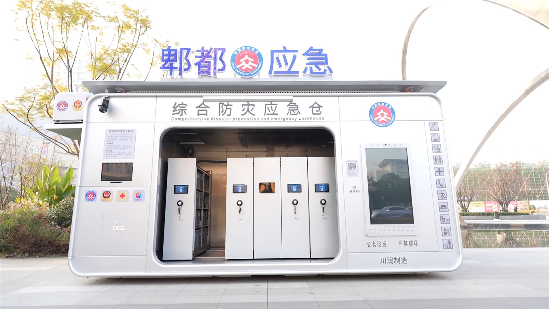 1月19日,郫都区龙湖成都蜀新天街警务室旁,一座外观简约的白色“方舱”正式投入使用。这是四川省首座集风险监测、装备前置、无人机调度、应急指挥于一体的综合防灾应急仓,由郫都区应急管理局与驻郫企业四川川润液压润滑设备有限公司携手打造,以政企联动之策、科技赋能之智,为城市商圈筑牢安全防线,让市民收获“看得见的安全感”。
