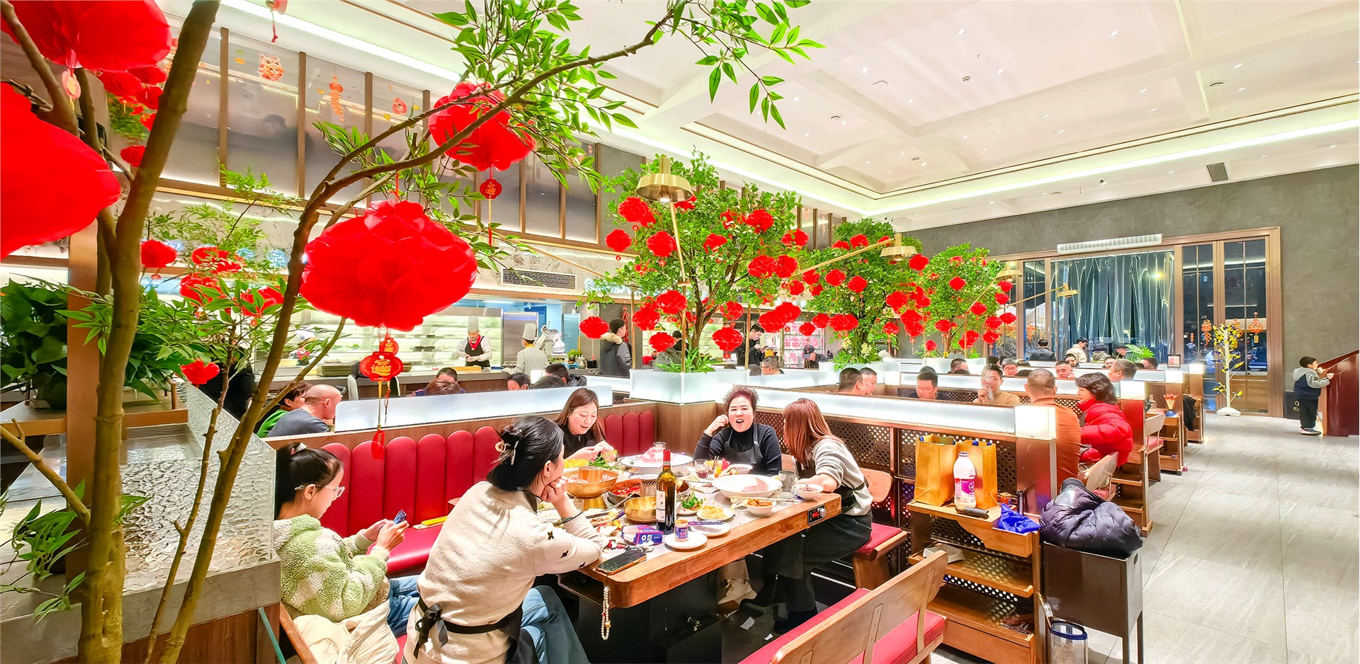 连锁火锅品牌同样备受青睐,荣胜和鲜活火锅大蜀店经理杨女士表示,截至目前,门店除夕夜预订量近百桌,包间基本订满,大厅还有少量餐位。随着春节临近,家庭聚餐、朋友聚会的需求还在持续增长。